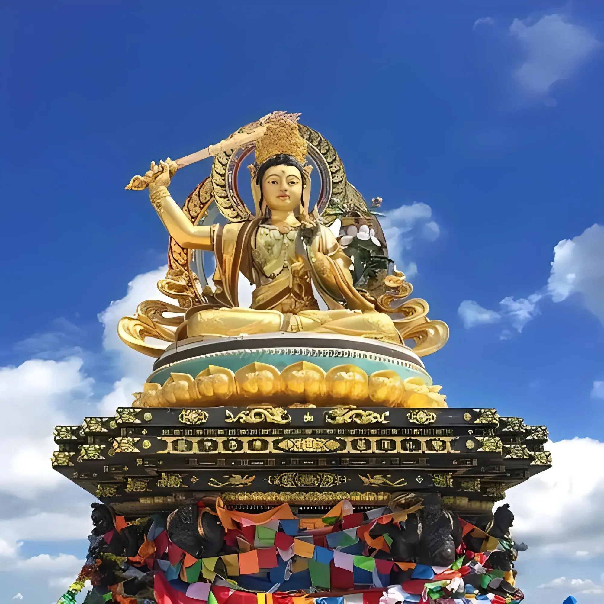 文殊菩萨,佛教四大菩萨之一。智慧、辩才第一,众菩萨之首,被称为“大智文殊菩萨”。 又称妙德,妙首,妙吉祥,是释迦同时代的菩萨,在释迦牟尼成佛时候出家。