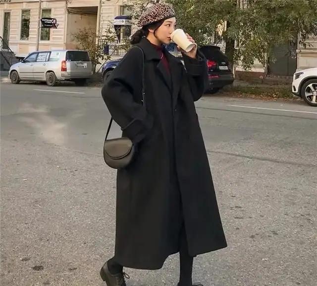 长款的大衣一般比较适合搭配一些宽松的大包,突出韩式的潮流风,而且如果露出脚踝,搭配宽口鞋子更加的女人味十足,如果需要宽松,牛仔裤和运动鞋比较适合。