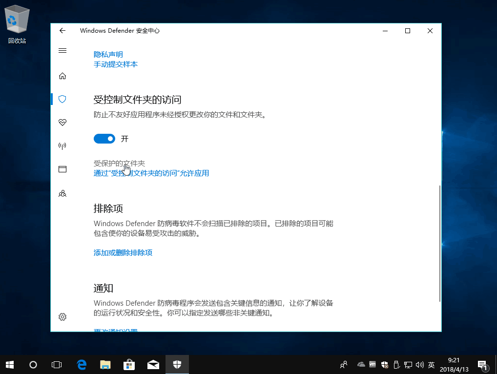 开启受控制文件夹的访问