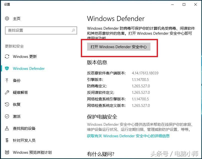 如何开启windows defender安全中心