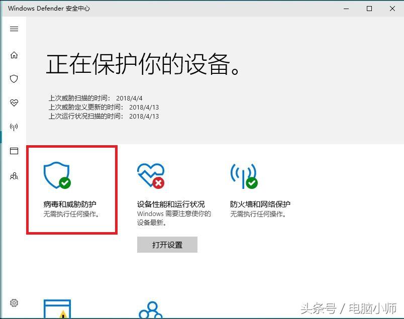 打开windows defender安全中心