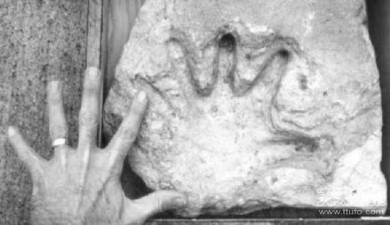 譬如加拿大北极圈一块石灰石上的“人类手印”化石,就具有1.1亿年的历史。在美国犹他州德耳塔附近的一块泥板岩上,考古学家发现的一个人类脚印化石,估计有3亿到6亿年的历史。