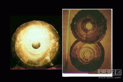 1938年,中国考古学家纪蒲泰等人到青海南部的巴颜喀拉山地区考察时,在一个不太显眼的山洞里共挖出716块花岗石圆形体,中间稍四无孔,每块厚度约2厘米,从中间向四周辐射出许多十分规则的水波纹线条,极似现代的镭射唱片,上面还刻有许多现代人无法解读的各种符号。