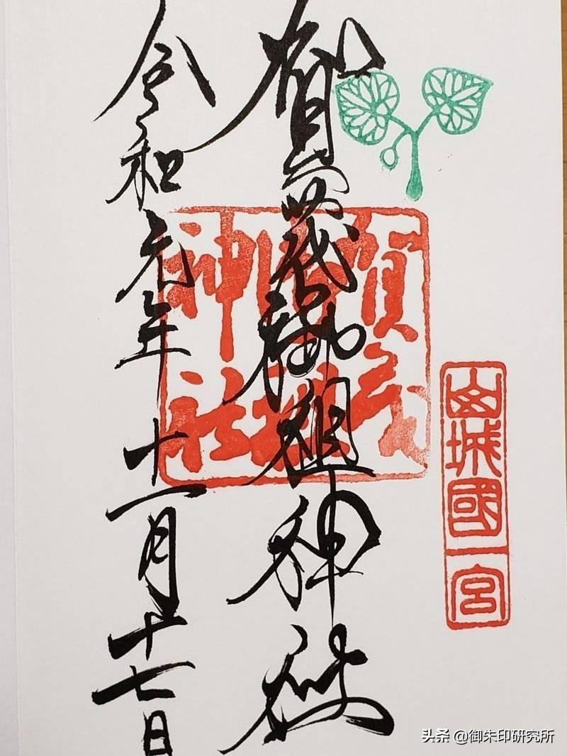 中间墨书为“贺茂御祖神社”,即下鸭神社的正式名称,右边朱印“山城国一宫”。