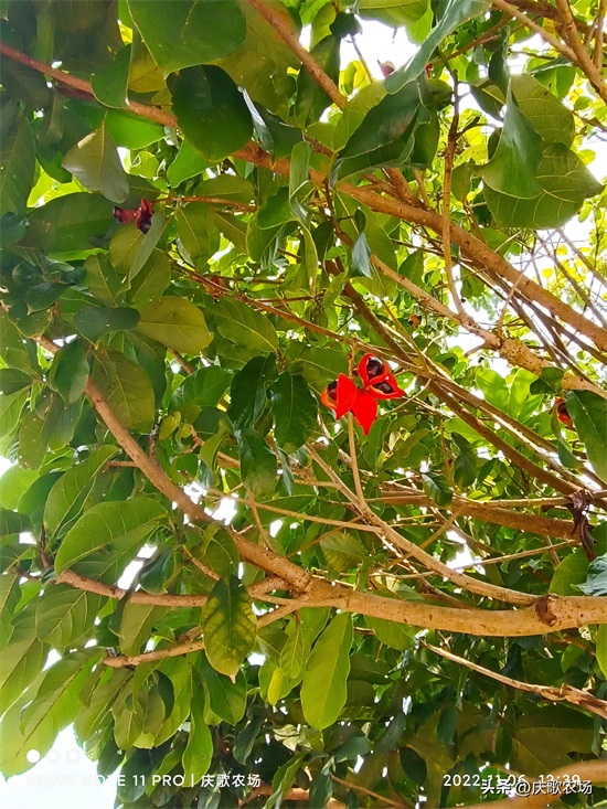 但是九层皮果园少有人种,因为苹婆果的观赏价值很高,是一种优质的观赏树木。民间还认为苹婆果树是一种寓意美好的“风景树”,具有镇宅聚气,象征着整个家庭兴盛发达,所以人们喜欢种在住房周围(见图5、图6)。