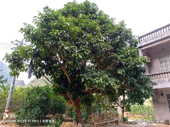 在南方广西、广东和福建一带,农村人都喜欢在屋前种植果树,既能作为风景树挡风遮雨,又能作为果村收获果实,一举多得。