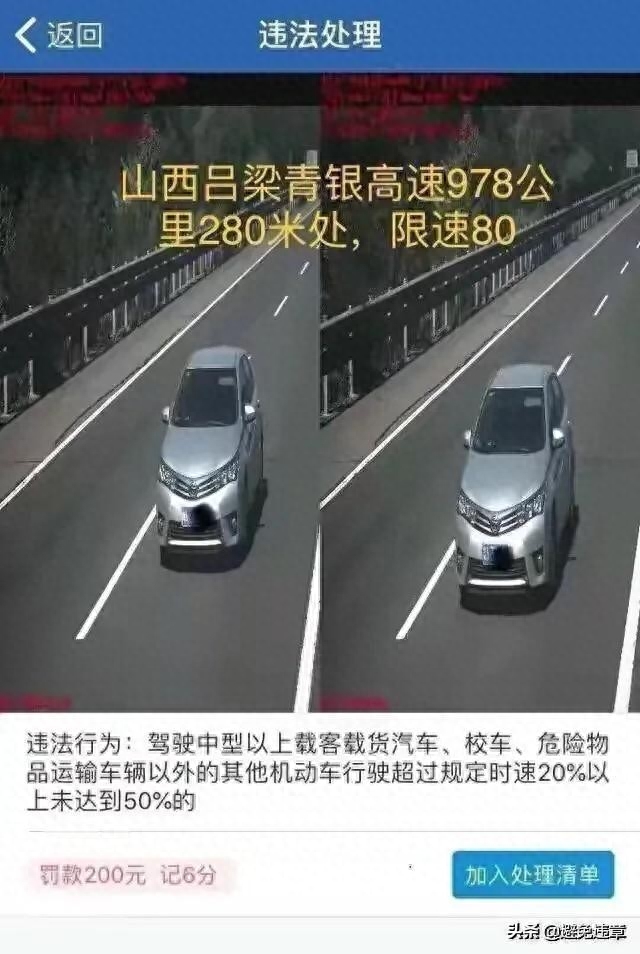 ②超速20%以上未达50%,罚200元记6分(例如限速80开96至119就会被罚200元记6分)。
