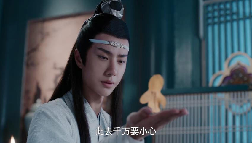 在剧中,魏无羡和蓝湛终于调查到了金光瑶的身上,魏无羡变幻成小纸人在蓝湛额头上撒娇了一会儿就去金光瑶那儿调查聂明玦的死因,魏无羡发现金光瑶的密室有异样于是同蓝湛一起上金陵台,到金光瑶的密室一探究竟。