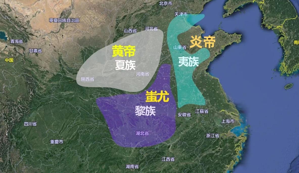 由于黄帝族的东渐,炎帝族对黄帝族阪泉大战失败,其主干部分仍留居中原,余众分三路向东、南、西方向溃逃,留居中原的与黄帝族结成同盟,其首领号为四岳。