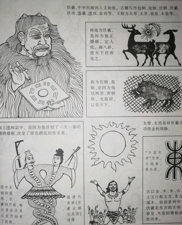 《尸子》载:“宓牺氏之吐上,天下多兽,故教民以猎”,《易·系辞》:伏羲氏“作绳而为肉罟,以用以渔”