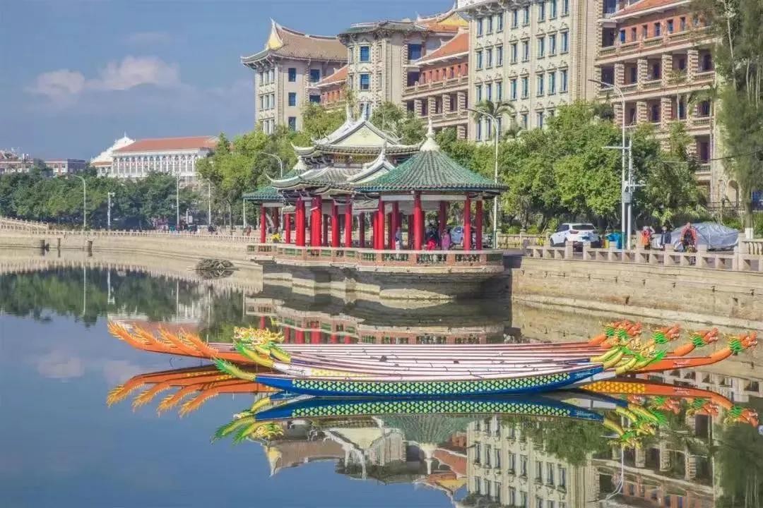 每年端午节,龙舟池便热闹非凡。精彩的龙舟赛事让人心潮澎湃,池边的美景也让人心旷神怡。这里也是散步赏景的好去处白天的龙舟池,在微风轻抚下波光粼粼,夜幕降临,倒映在池中的灯火璀璨夺目,惹人陶醉。