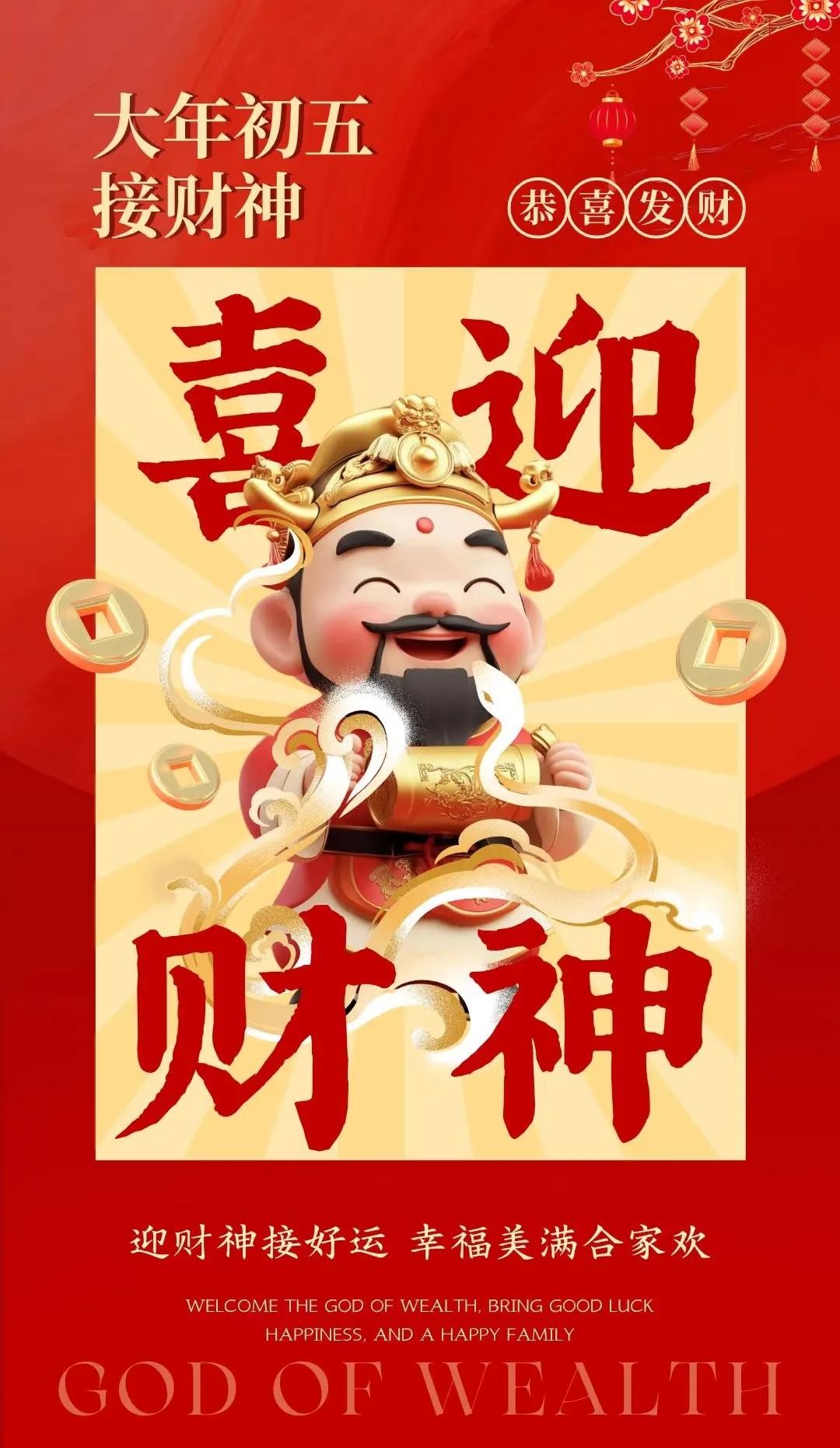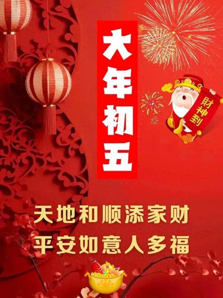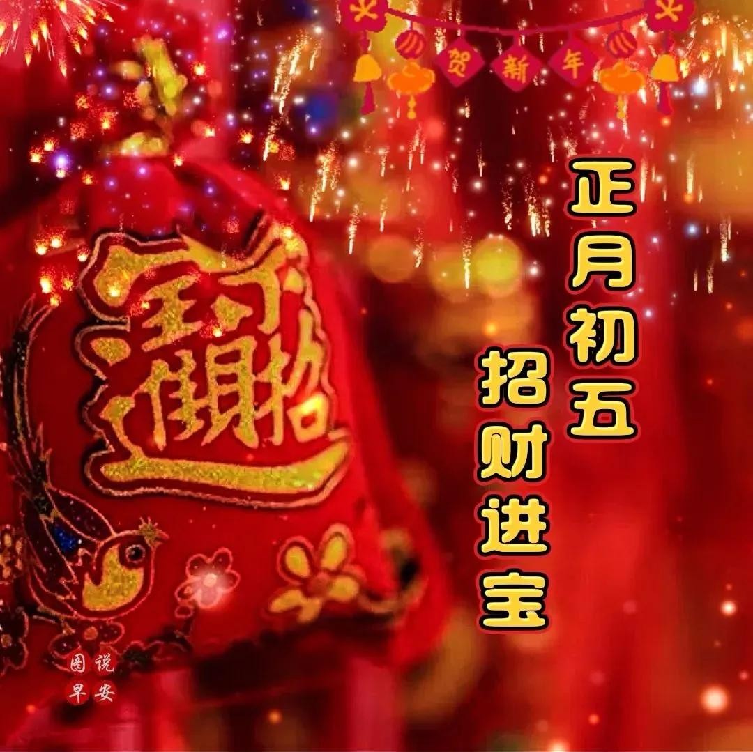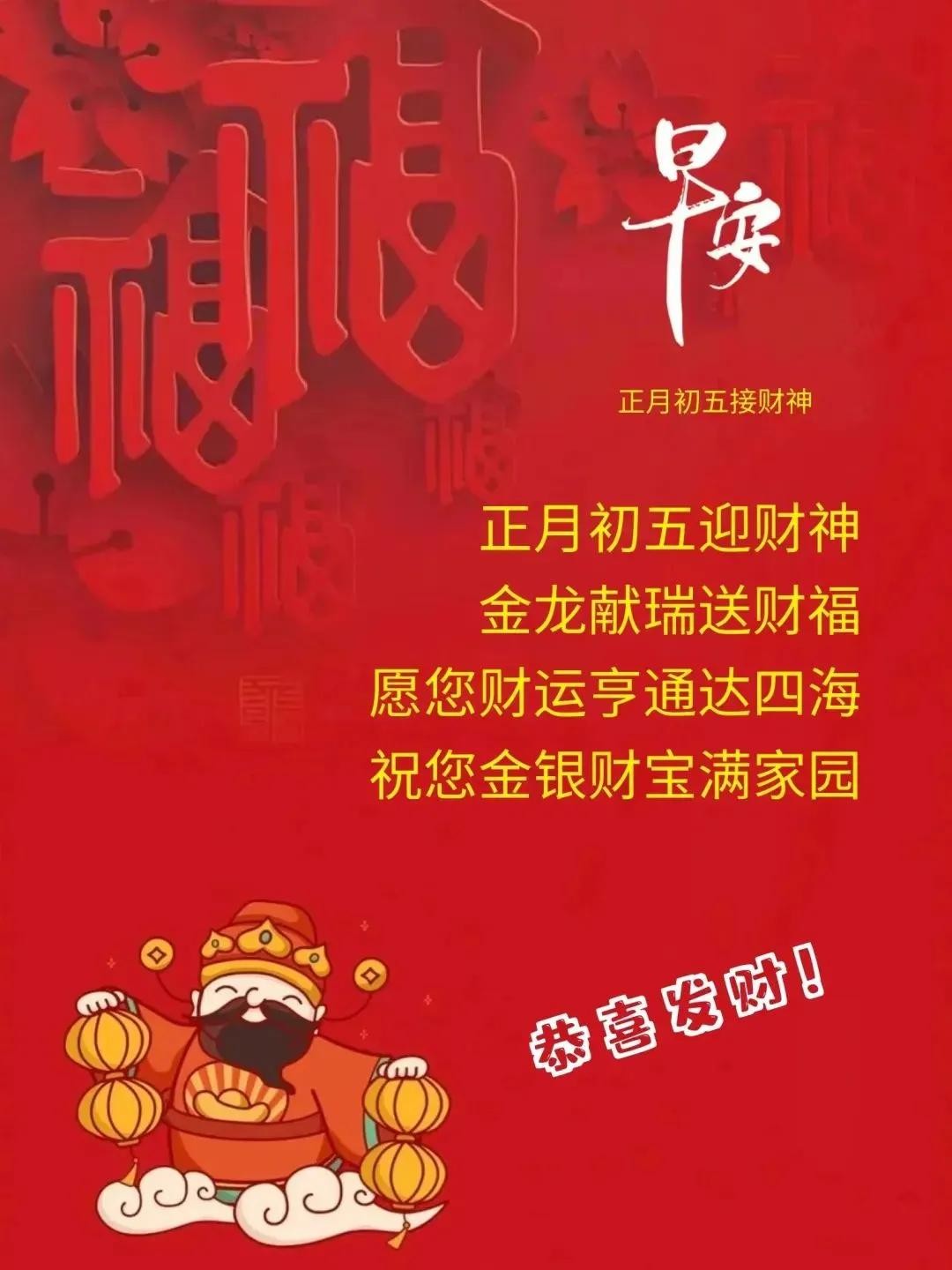 3. 正月初五,早安!愿财神爷眷顾你,让你出门遇贵人,处处有商机,财富与好运一路相随。