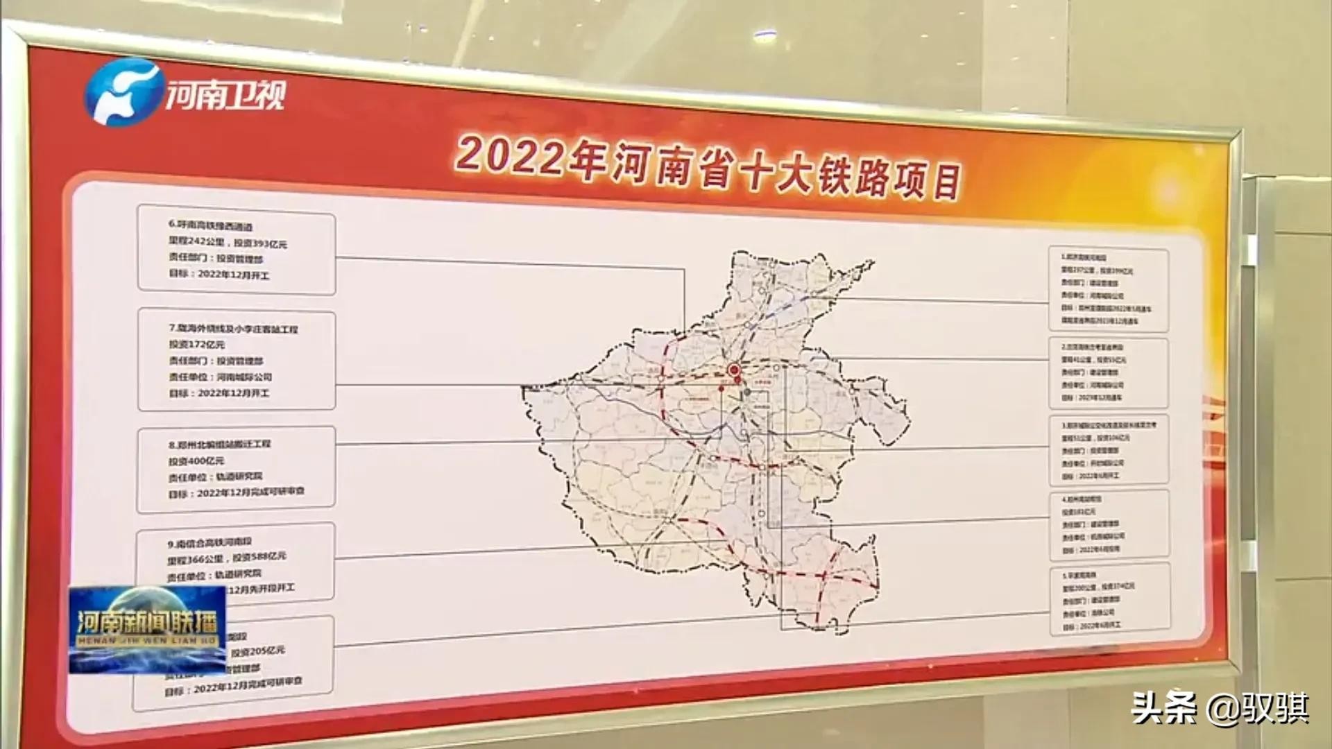 在近日的《河南新闻联播》画面中,2022河南十大高铁项目展示板上,平漯周高铁与呼南高铁豫西通道项目赫然在目。