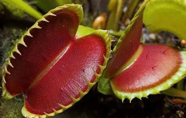 捕蝇草是原产北美洲的一种多年生草本植物,茎很短,叶子顶端长有一个类似贝壳的捕虫夹,当有小虫闯入,能以极快速度将其夹住并消化,非常有趣的植物,适合盆栽。