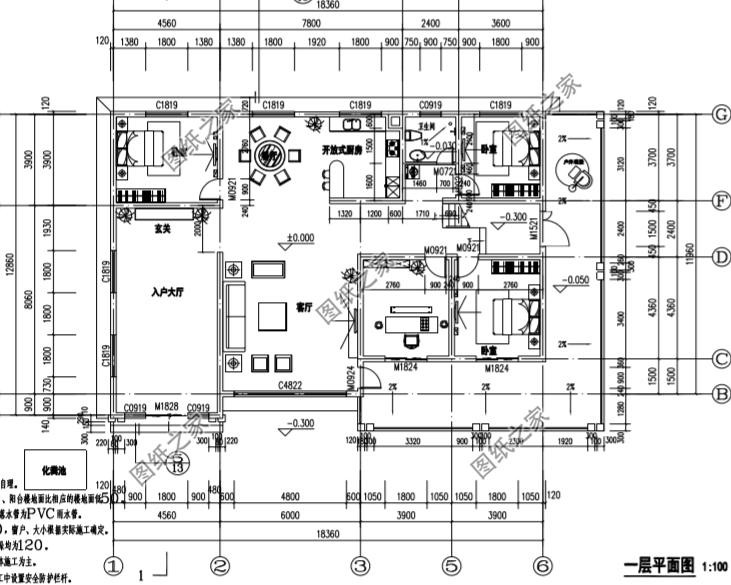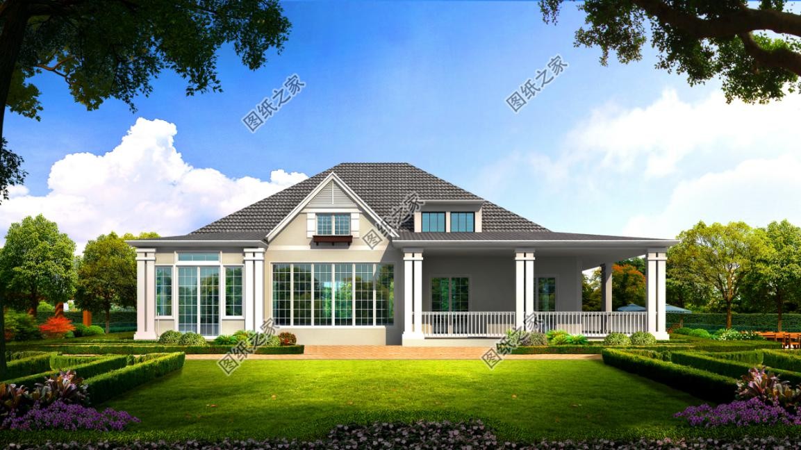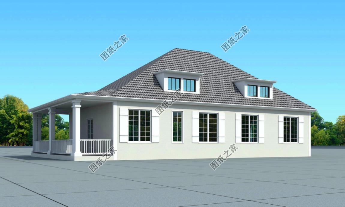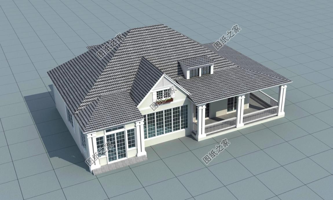 户型二:现代田园风格一层别墅设计图,带阁楼