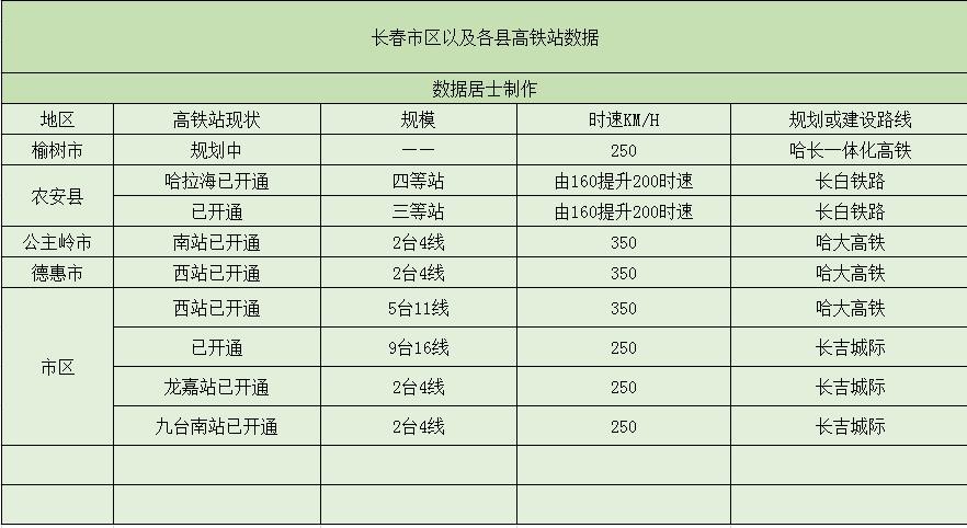 长春的9个高铁站,其中3个在规划建设中,6个已经开通使用