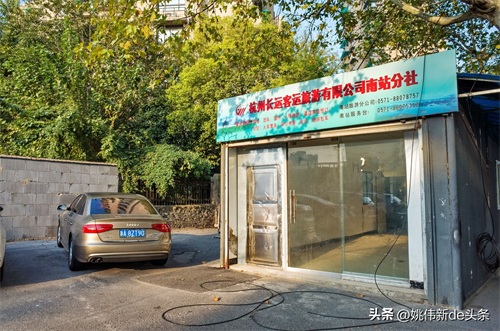 蓝天白云下,汽车南站后面早已是高楼林立,这“杭州汽车南站”看上去似乎有点太简陋不够档次了……