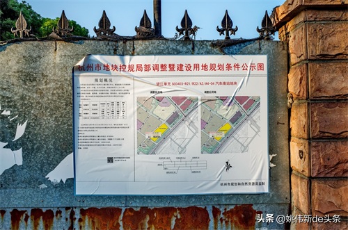 2019年10月24日,位于东宝路曾经的杭州汽车南站的围墙上张贴着《杭州市地块控规局部调整暨建设用地规划条件公示图》。咱虽看不懂这调整的细节,但从公示可以知晓这“未来社区”已在这里落户……
