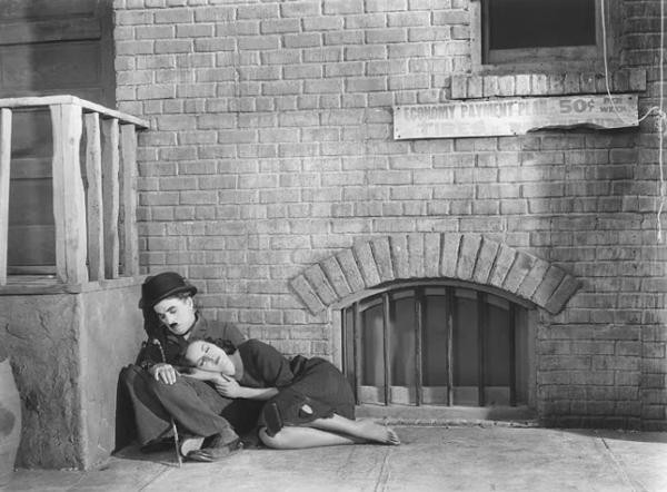 影片最后以两人朝着“充满希望的未来”作为结束,为整部黑白默片添上最为动人的人性光辉。男女主在他家草地上的遐想、破旧的木屋以及结局的”希望之光“,种种画面都体现了经济危机之下对底层人民的关怀,体现了”摩登“之上社会现实的反思。