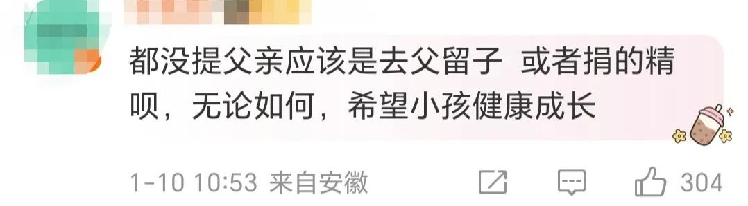 有网友猜测,她发文的时候都没提宝宝的爸爸,有可能是去父留子。