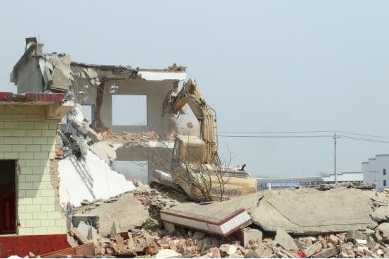 建和小汪村也是合巢产业新城征地拆迁的一部分。当天,挖掘机正在进行拆迁工作。一座座老旧房屋就地倒塌,不久之后这里将会成为城市中心繁华地段。