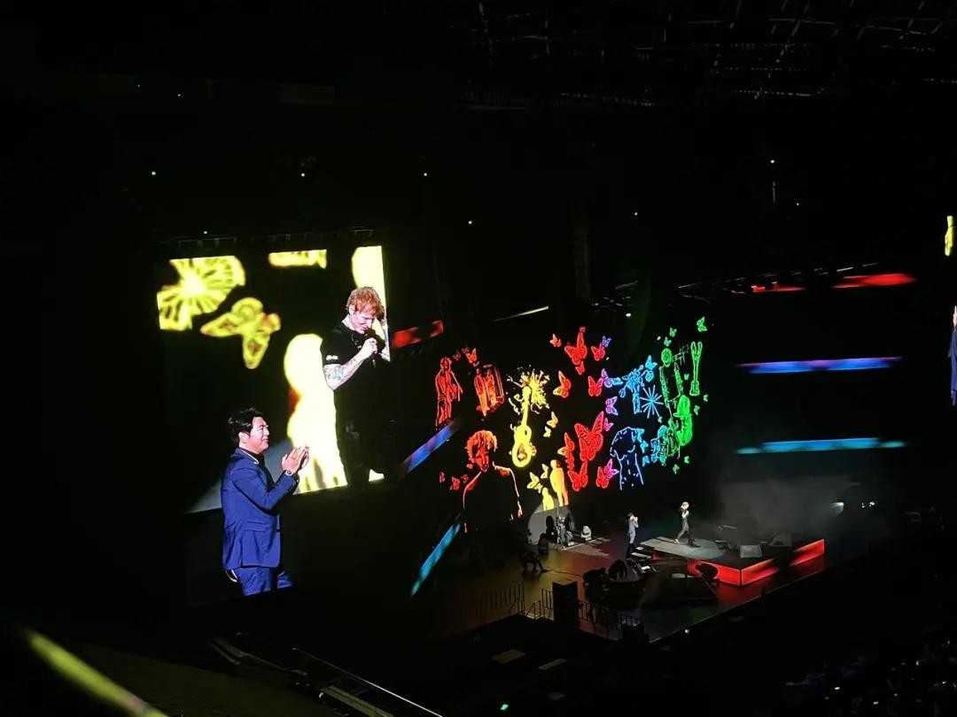 与之前新加坡场的“热带狂欢”不同,杭州的春寒被歌声烘得滚烫。Ed Sheeran用中文“你好杭州”开场,虽然没有再会讲的中文,但黄老板显然挺有倾吐欲,大段英文talking,记者身旁两位男生不得不马上打开了实时音频翻译软件。