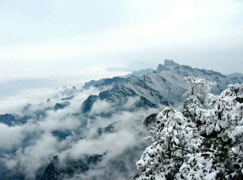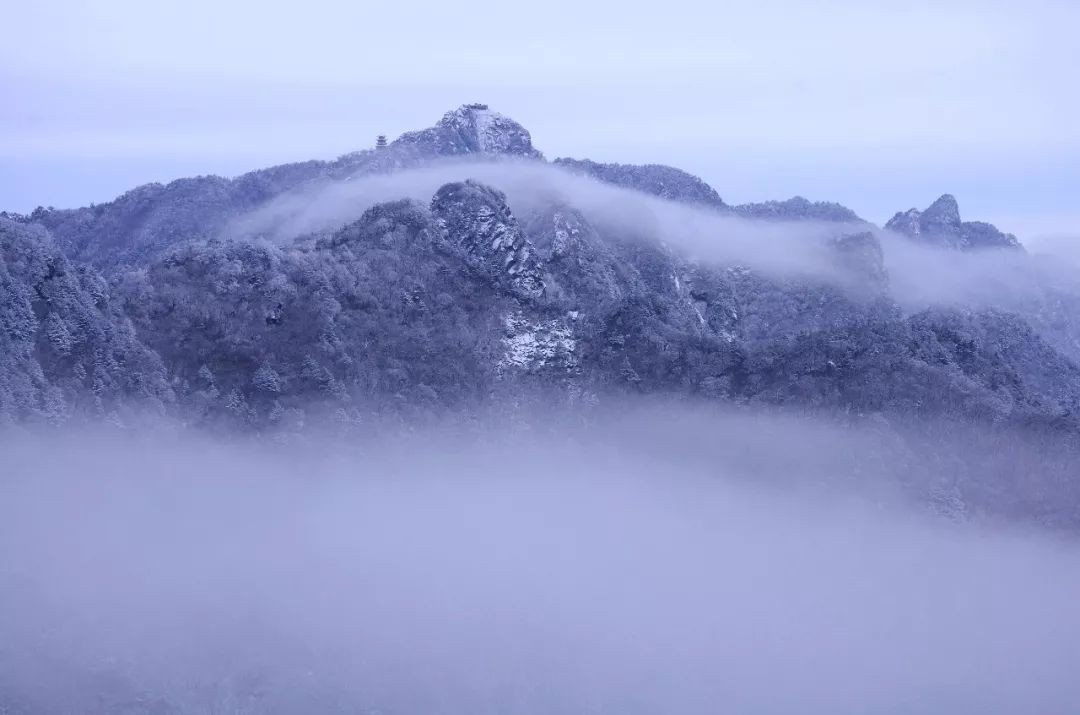 当白云山进入冬季。小雪又随风潜入夜,在漫天大雾里,一个令人惊艳的白云山出现在游人面前。