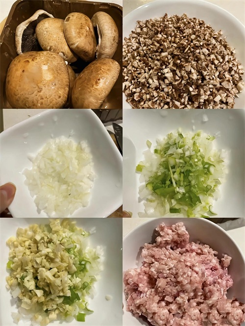 1:五花肉、香菇、姜蒜均用料理机打成末。