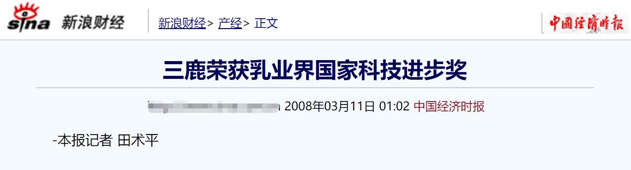 2008年1月8日,三鹿集团的新一代婴幼儿配方奶粉研究项目一举夺得了国家科学技术进步奖,这是中国乳品企业第一次登上国家最高科技领奖台,当时的新闻还特地报道说,这标志着我国婴幼儿配方奶粉的研究和生产达到了国际先进水平。