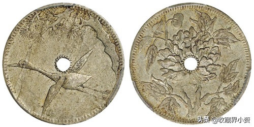 下面这枚民国时期四川松鹤延年十文型马兰白铜币,PCGS XF45,有穿,在2020年北京诚轩秋拍中356500元成交;