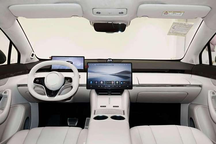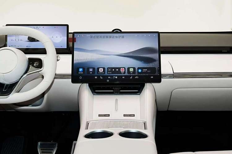 至于内饰方面,智界R7则是延续了简约至上的风格理念。环抱式的中控台结构运用其中,看起来层次感分明,另外双色的座舱搭配以及大量软质材料包覆其中,也较好提升了车内的豪华高级感。与此同时,在全液晶仪表盘和15.6英寸中控显示屏的加持下,论起科技感渲染,也有着可圈可点的表现。当然在智能化方面,智界R7也给了我们不小的惊喜,首先配备了Harmony OS4智慧座舱,车机交互表现值得称赞,无论是从操作流畅度,还是便捷性方面分析,智界R7的智能座舱都称得上是佼佼者。