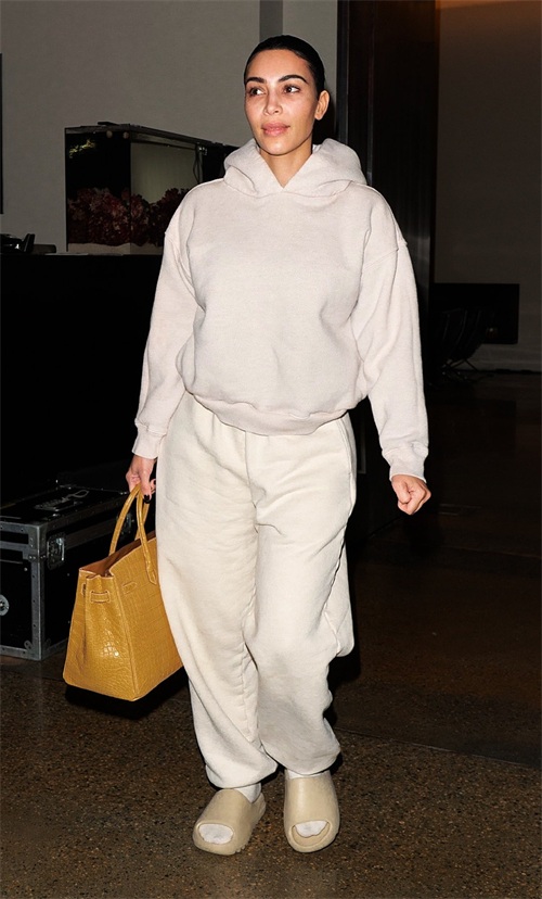 实际上,金卡戴珊的素颜完全不是现在这个状态,她的素颜更清爽更年轻,皮肤状态也还不错,而且本身肤色并不黑。同样一身运动装造型,也是非常臃肿的。不过搭配拖鞋和运动袜就显得特别慵懒的味道,一款金黄色手拎包,足够奢华霸气了。