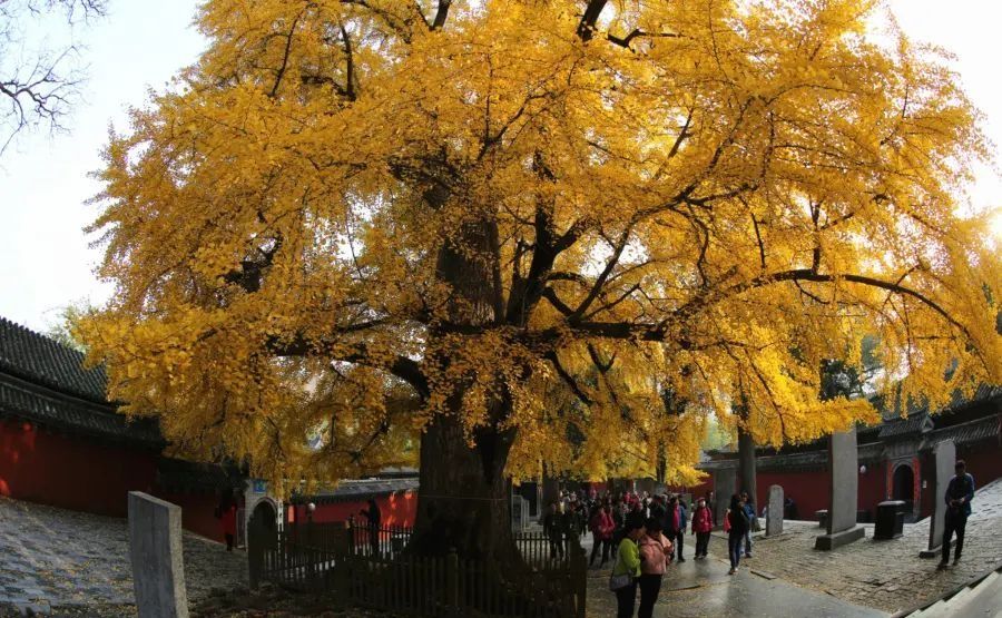 天成寺庙前有两棵古老的银杏树,这两棵银杏树均高25米,干围3.1米,已有800多岁的高龄。红叶与山峰相拥,乘坐上一段索道,空中俯瞰万山红遍的壮美景色,定会醉游群山。