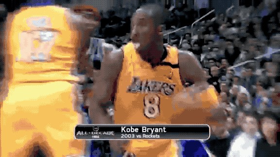 科比底线突进,单手隔扣姚明