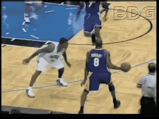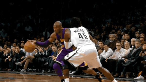 科比一步过掉防守人,翻身单手暴扣
