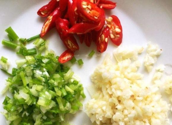 小米椒、葱、蒜清洗干净,把小米椒切成小段,葱蒜切成末备用;