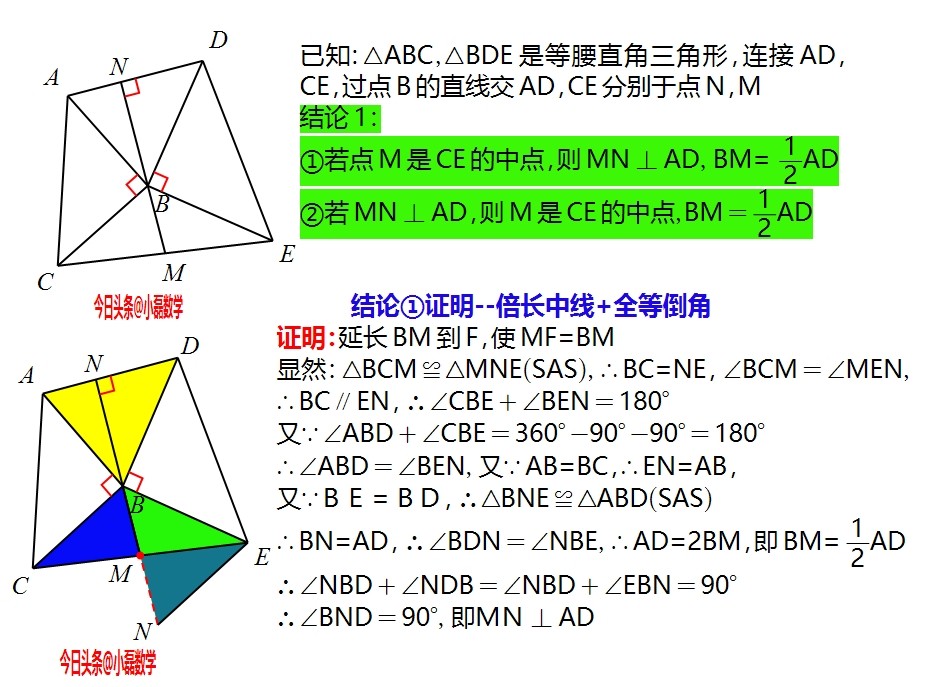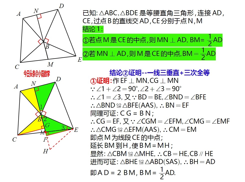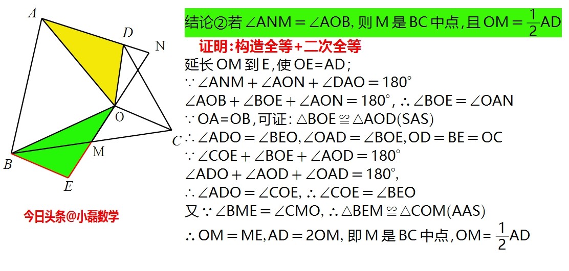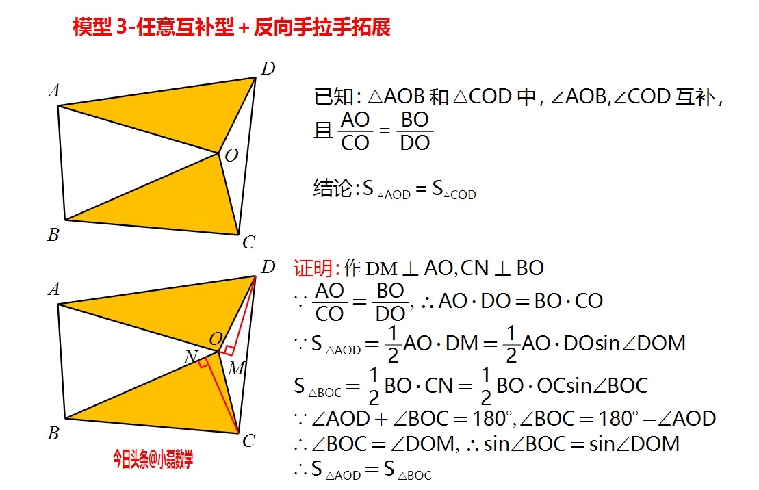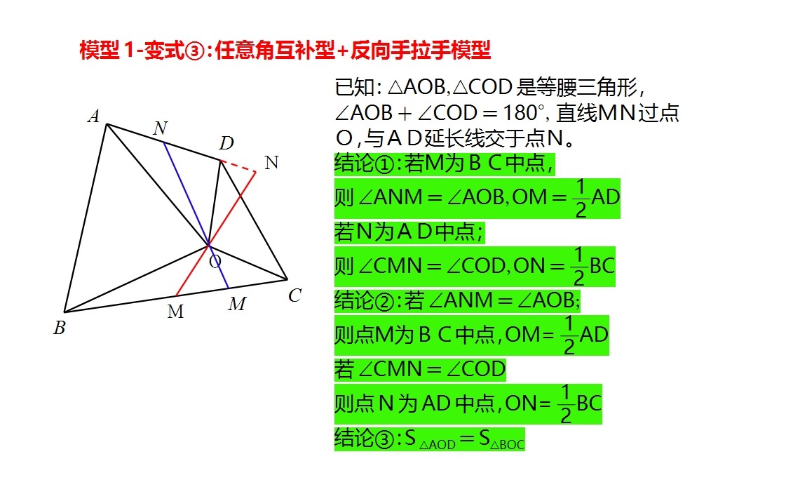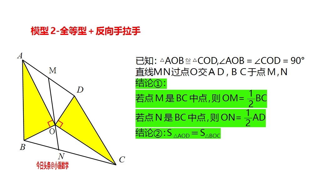 在很多题目中会碰到手拉手模型,但是往往题目出现反向手拉手模型就比较棘手,所以对于模型中的常见结论一定要自己亲自推导一遍,熟记每个结论的证明,以及证明过程中用的有关性质、定理、方法,以便加强记忆!