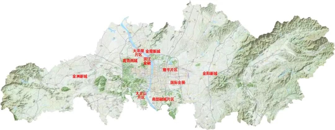 “十片” 为承担主城区内部差异化发展的功能片区,形成金阳新城片、金洲新城片、金霞新城片、滨江金融片区、国际会展片 区、高铁西城片区、南部融城片区(含解放垸-大托铺、暮云片 区、跳马片区)、隆平片区、大泽湖片区、大王山片区等片区中心。