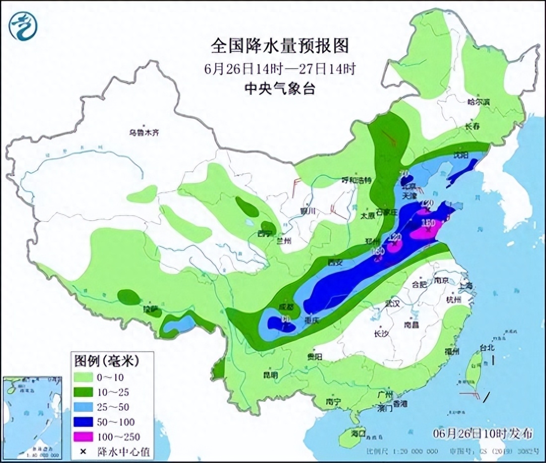 根据中央气象台报道,目前,北方入汛来最强降雨已经开启。预计今天(6月26日)至28日,强降雨将自西向东展开。此次过程影响范围广,将波及十余省份,雨带移动速度快,降雨对流性强,局地日雨量可能突破历史同期极值。京津冀等地需警惕降雨可能引发的城市内涝,山东、河南、河北等地警惕局地强降雨可能导致的旱涝急转。