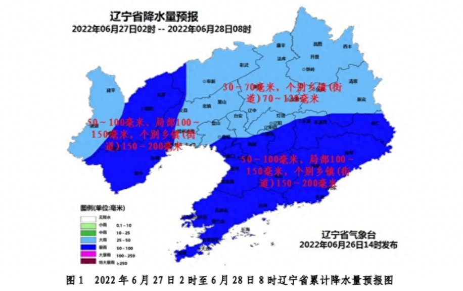 预计27日上午到夜间沈阳地区大雨到暴雨,局部大暴雨,平均降水量40~70毫米,其中辽中、新民、于洪、铁西、沈北和法库的个别乡镇或街道可能超过100毫米。降水过程中,伴有短时强降水、雷电、短时大风等强对流天气,最大小时降水量30~50毫米,最大瞬时风力8~10级,市区主要降水时段为27日14时至20时。