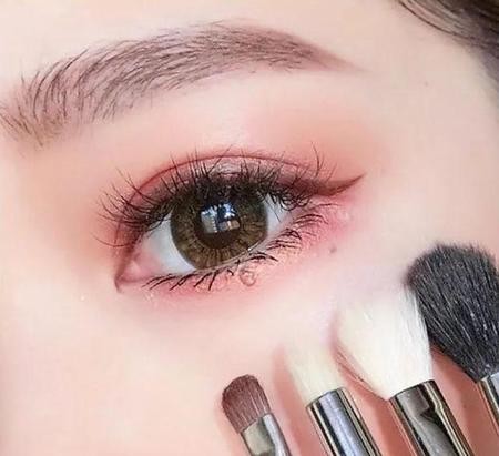 可以用珠光色的眼影在上眼皮进行提亮(双眼皮可以多多使用珠光色眼影)双眼皮简单的眼妆到这步就可以完成,如果想让眼睛更加有神,再进行下面的步骤!
