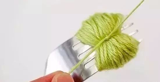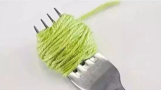 1:将长毛线缠绕在叉子上。