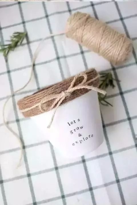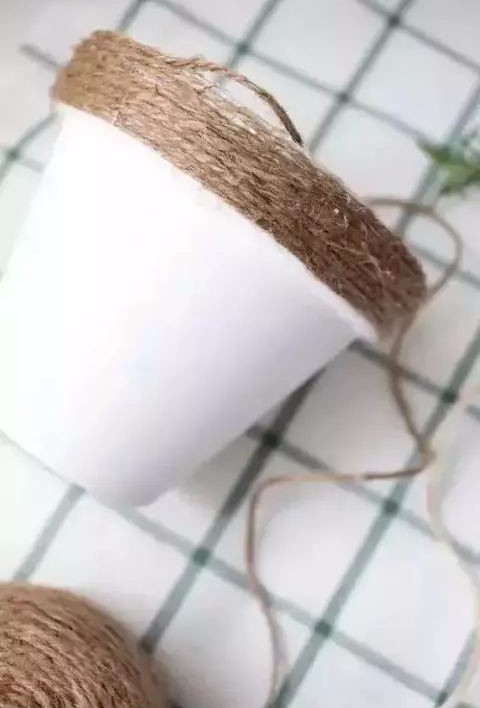 将毛线或麻绳一圈一圈缠绕在花盆的边沿。