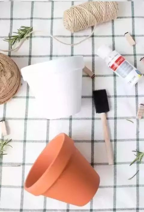准备好材料,花盆、毛线或麻绳、乳胶和工具。