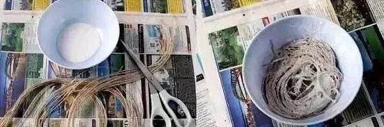 1:将毛线剪成几段,倒入装有乳胶的碗中,完全浸满,充分融合。