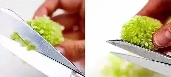 5:把两条长线打结,剪去多余部分,一个可爱的小毛球就做好了。