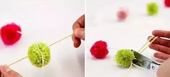 做法 ,在毛球中间用线一个个串起来即可。