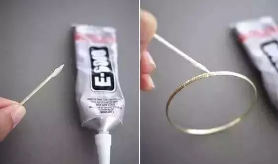 1:用细木棒粘上502胶,均匀仔细地涂在手环外侧。