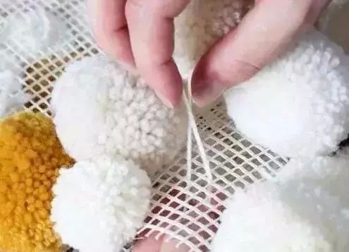 6:最后将毛球穿在格子网上就变成了一张毛茸茸的地毯。看起来就很暖和呢!