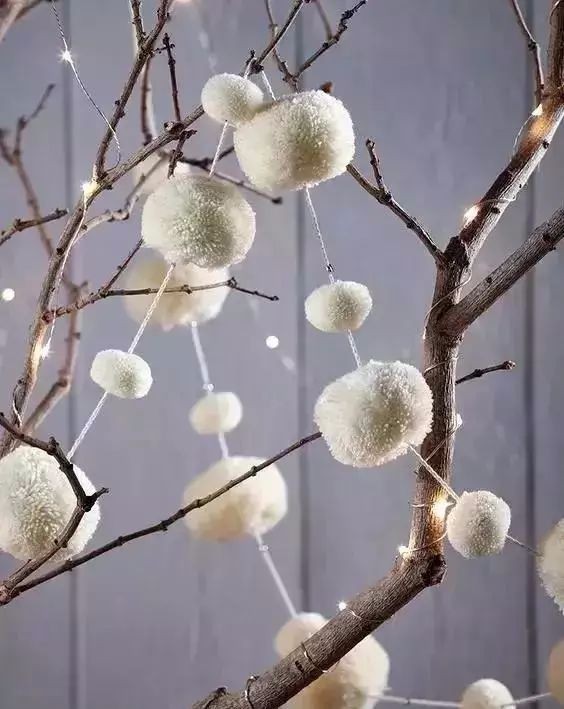 还可以在阳台或者院子里挂些彩色的毛球,比起普通的花环和彩灯,是不是特别多了?